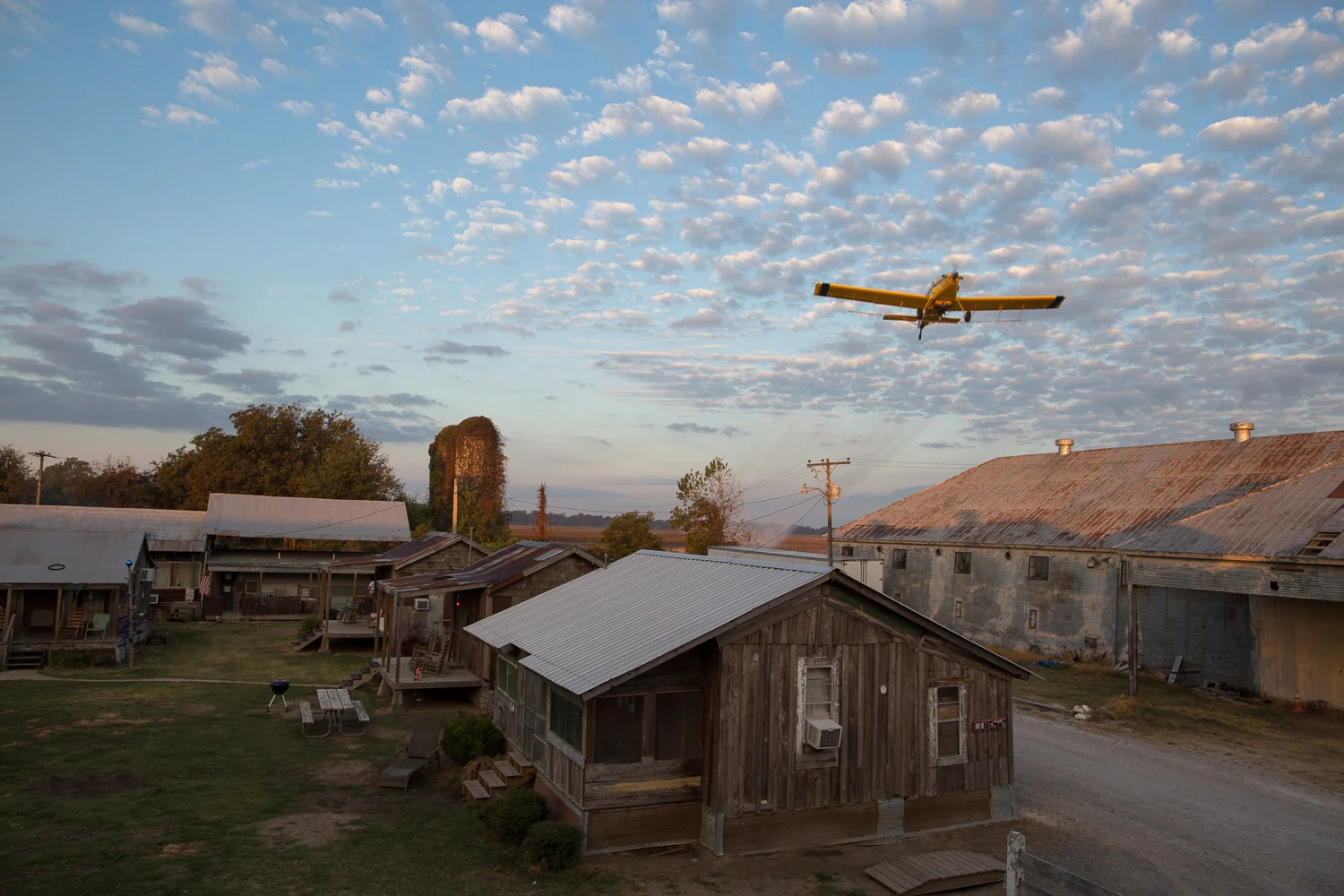 I was slumbering in the Mississippi Delta one morning last week when I heard a buzz overhead and realized this crop duster was spraying surrounding cotton fields. It was an atmospheric wake-up call, though I wish I'd had a HAZMAT suit to throw over my pajamas as I rushed out to snap this photo. I took a quick road trip through the South last week with my friend Anne Bartlett: New Orleans to Memphis, seven cities in eight days. We were following the Blues Route and chasing our favorite southern ghosts -- from William Faulkner and Tennessee Williams to Robert Johnson and Elvis Presley. We found them. We listened to blues in the hometown of Muddy Waters. We stood at the crossroads where, legend has it, Johnson made his Faustian deal with the devil to perfect his guitar licks. We choked up listening to "That's Alright" in the legendary Memphis studio where Elvis first recorded it. And, of course, we went to Graceland where my homage to the King included eating his favorite sandwich: grilled peanut butter and banana. Along the way we developed a deeper appreciation for how the work songs from those Delta cotton fields - the sharecroppers' blues, country and gospel - eventually mixed with urban sounds to help create the Rock and Soul soundtrack of our youth. It was a perfect road trip.